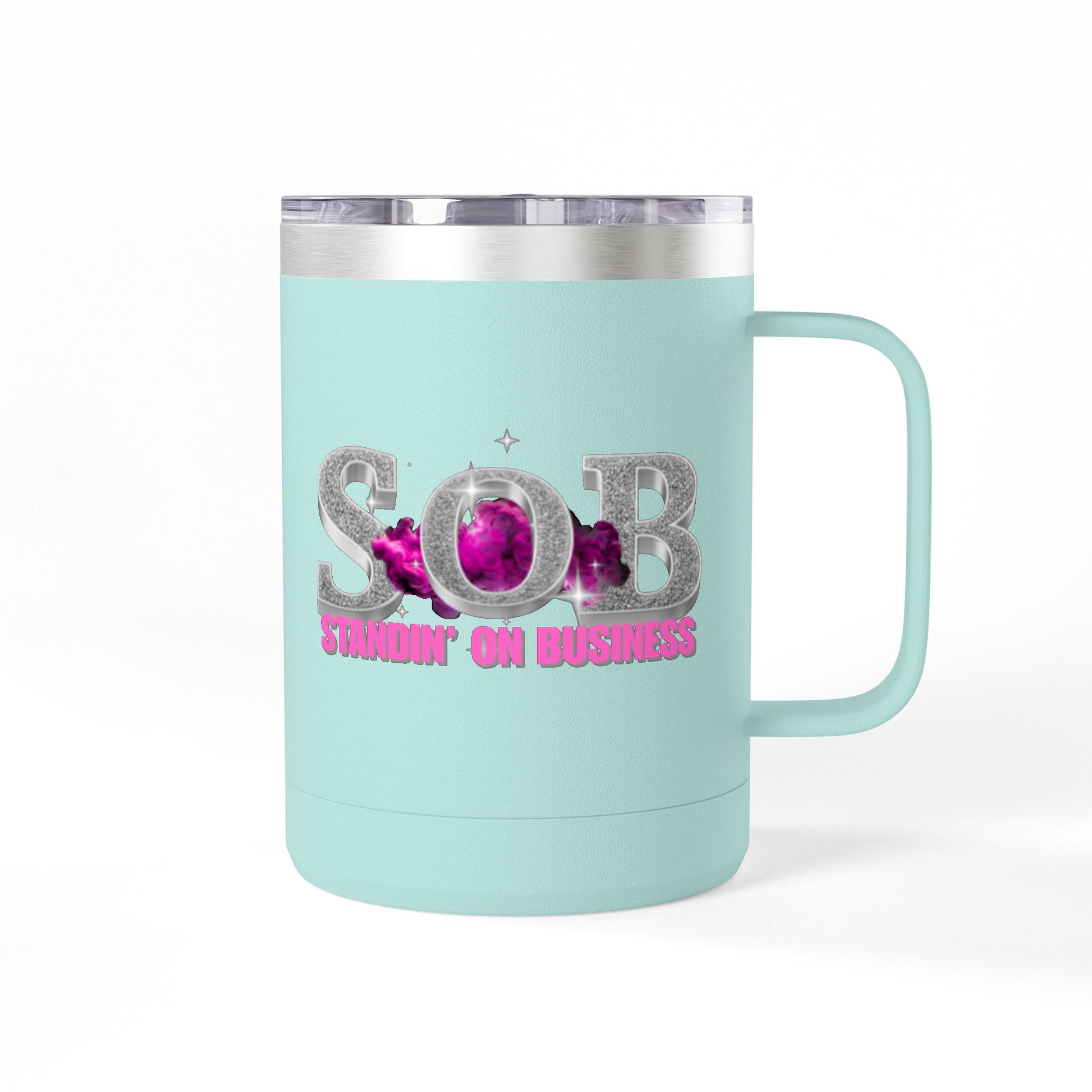 Meet the perfect gift for any coffee enthusiast – the coffee mug tumbler. Made with high-grade stainless steel, this highly durable tumbler is shaped like a mug with a convenient C handle. What's more, its double wall insulation can carry 15oz of your favorite coffee in the perfect temperature whether it's toasty or a refreshing cold brew. All tumblers come with a stylish powder coating and a lid included.