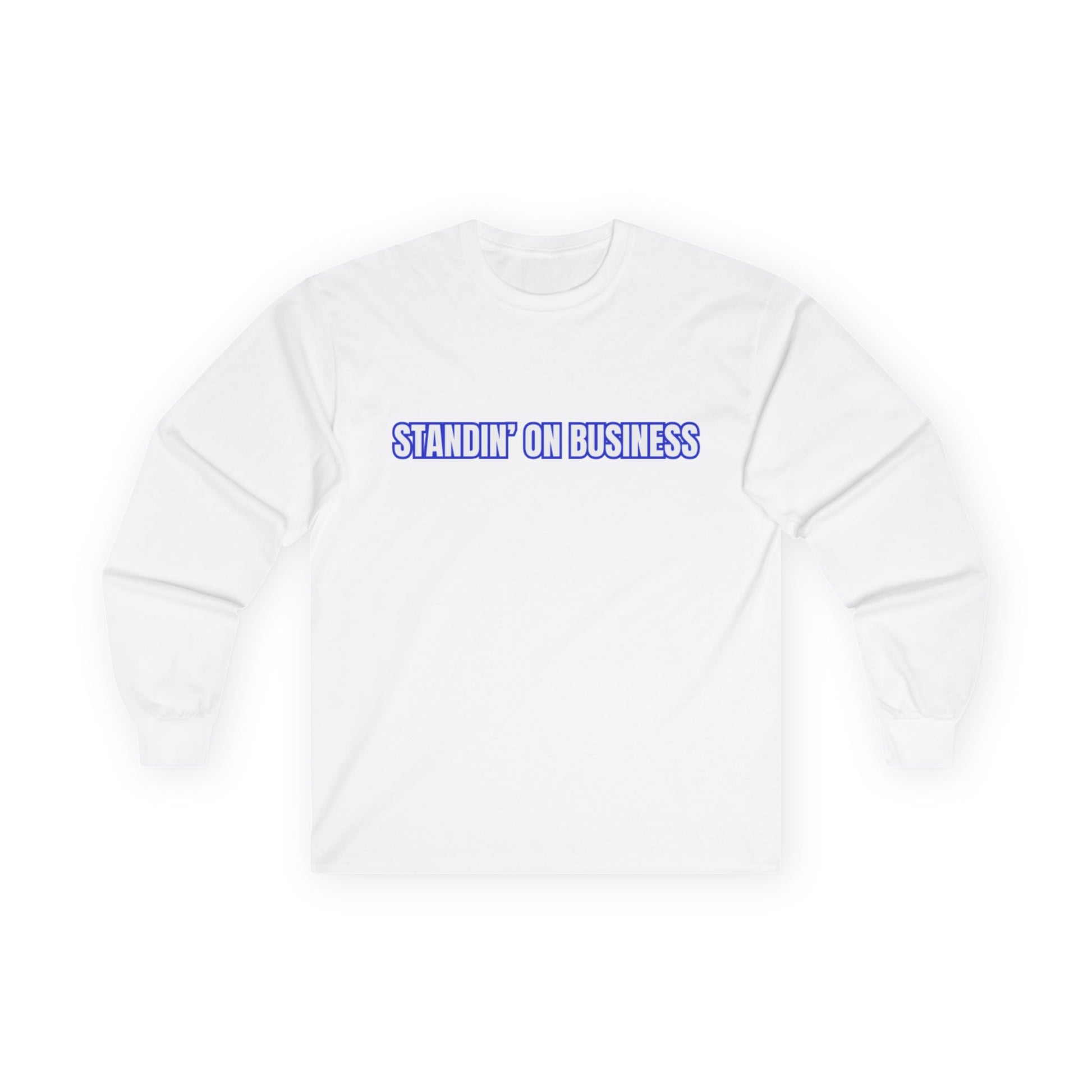 A soft vintage-feel long sleeve that speaks with quiet confidence. The clean white canvas puts the slim, typographic chest print front-and-center, giving off low-key hustle energy without shouting. Lightweight-but-substantial cotton drapes comfortably through the shoulders and sleeves, while ribbed cuffs and collar hold their shape wash after wash. Wear it on its own for layered minimalism or under a jacket when you need that steady, work-ready layer. It’s for people who show up and let results do the talking.