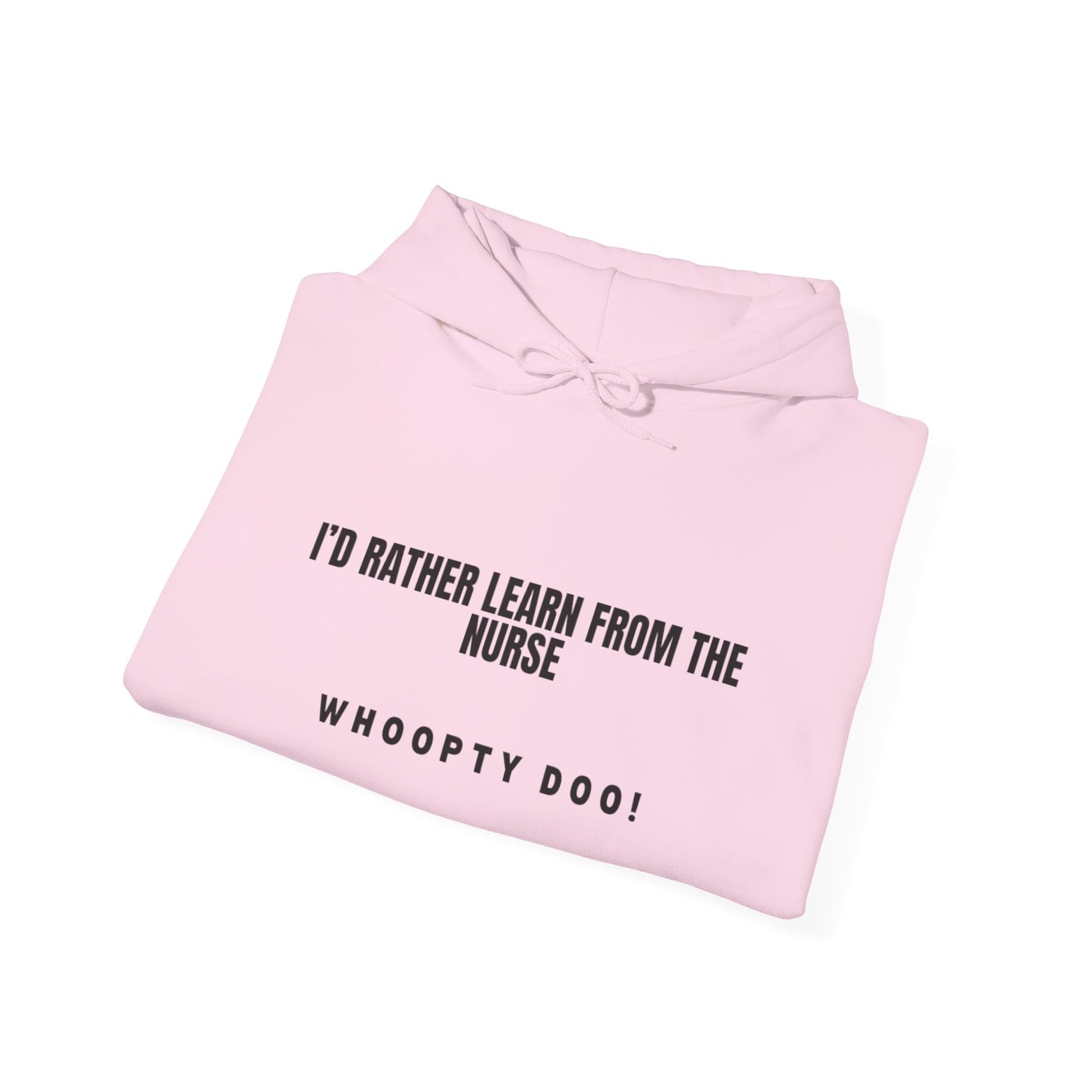 This cozy hooded sweatshirt carries a quiet, clinical wit — a soft white fleece with understated black text that reads like a knowing nod between healthcare colleagues. The relaxed fit, double-lined hood, and roomy kangaroo pocket create that lived-in comfort you reach for after a long shift. Subtle sleeve prints add a hint of personality without shouting. Lightweight enough for layering, yet warm on its own, it becomes an easy go-to for commute days, late-night study sessions, or slow mornings with coffee. It feels like the kind of garment that understands long hours and dry humor, and wears both with honesty.
